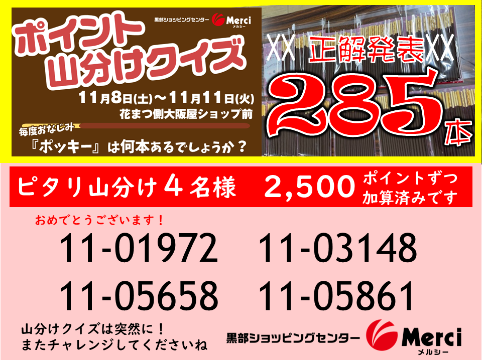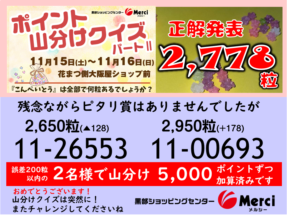 ポイント山分けクイズ『ポッキー何本』『こんぺいとう何粒』正解・山分けポイント発表