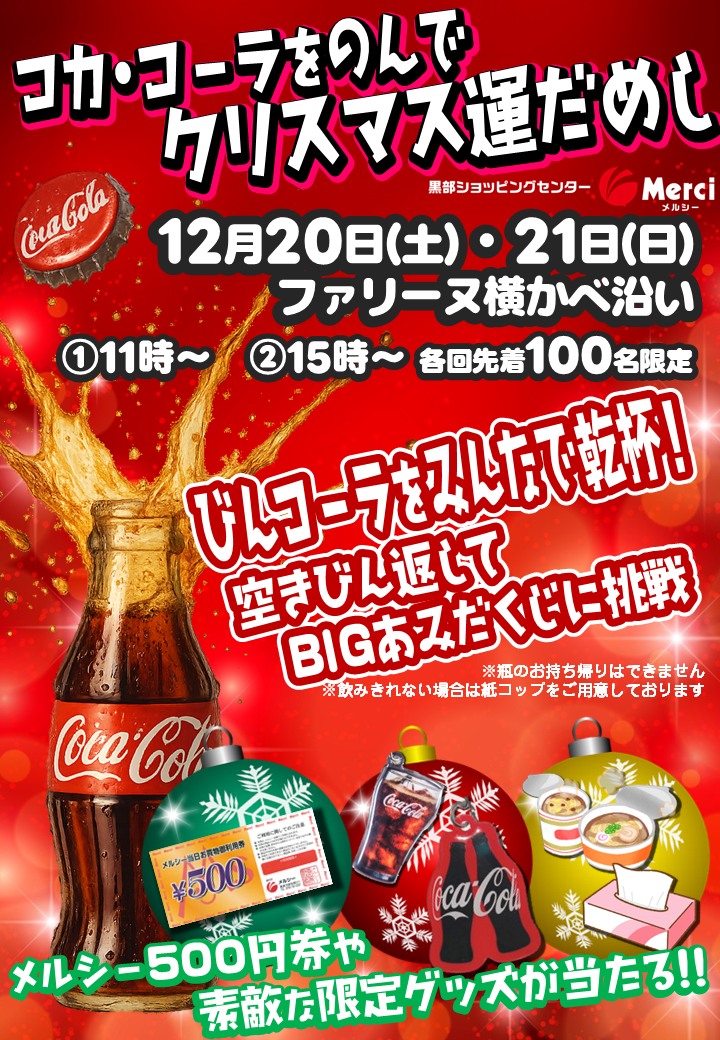 12月20日・21日メルシークリスマス『コカ・コーラをのんでクリスマス運だめし』