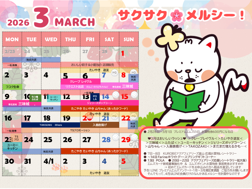 3月のペットカレンダー・催事カレンダー