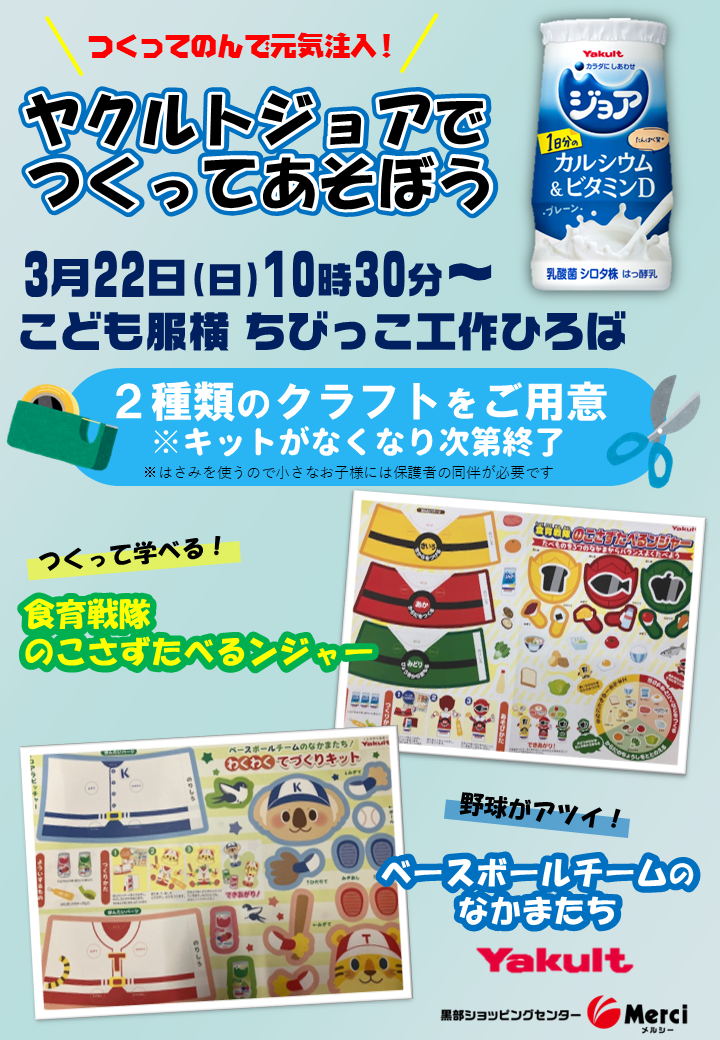 3月22日(日) ちびっこイベント『ヤクルトジョアでつくってあそぼう』