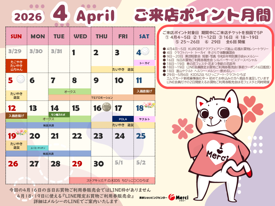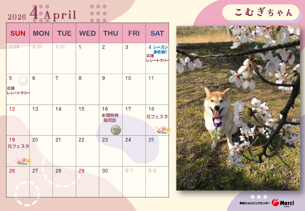 4月のペットカレンダー・催事カレンダーができました