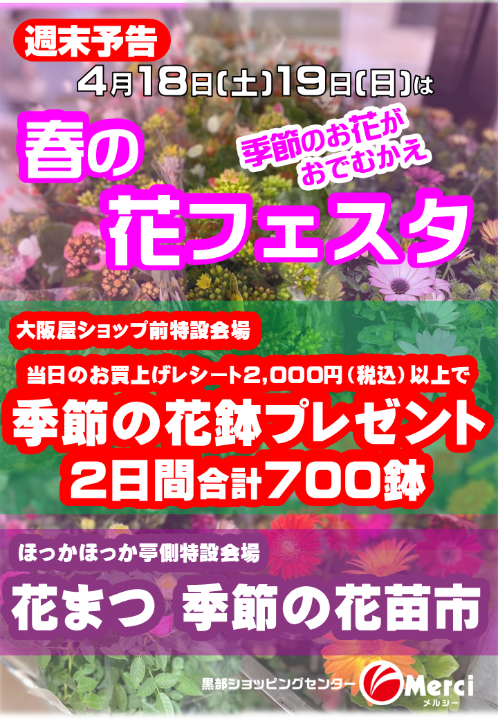 大阪屋ショップ前特設会場にて、当日のお買上げレシート2,000円(税込)以上で季節の花鉢をプレゼント!(2日間合計700鉢限定)