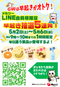 5月2日~6日 メルシーLINE『早起き抽選5連発!』
