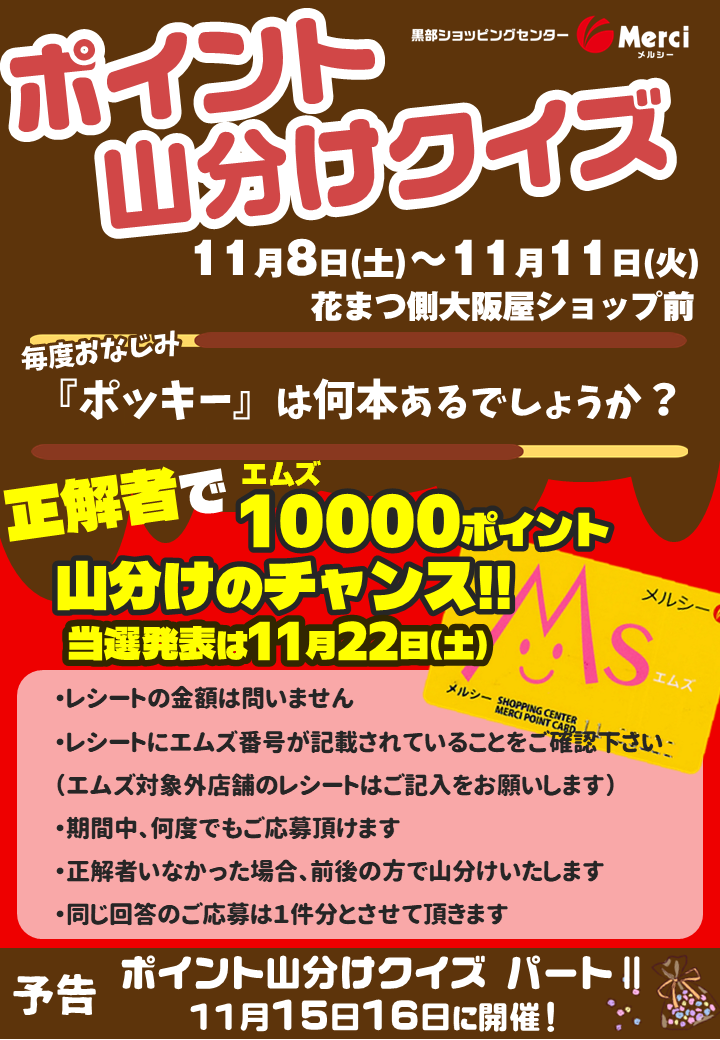 11月8日~11日 ポイント山分けクイズ『ポッキー何本あるでしょう』
